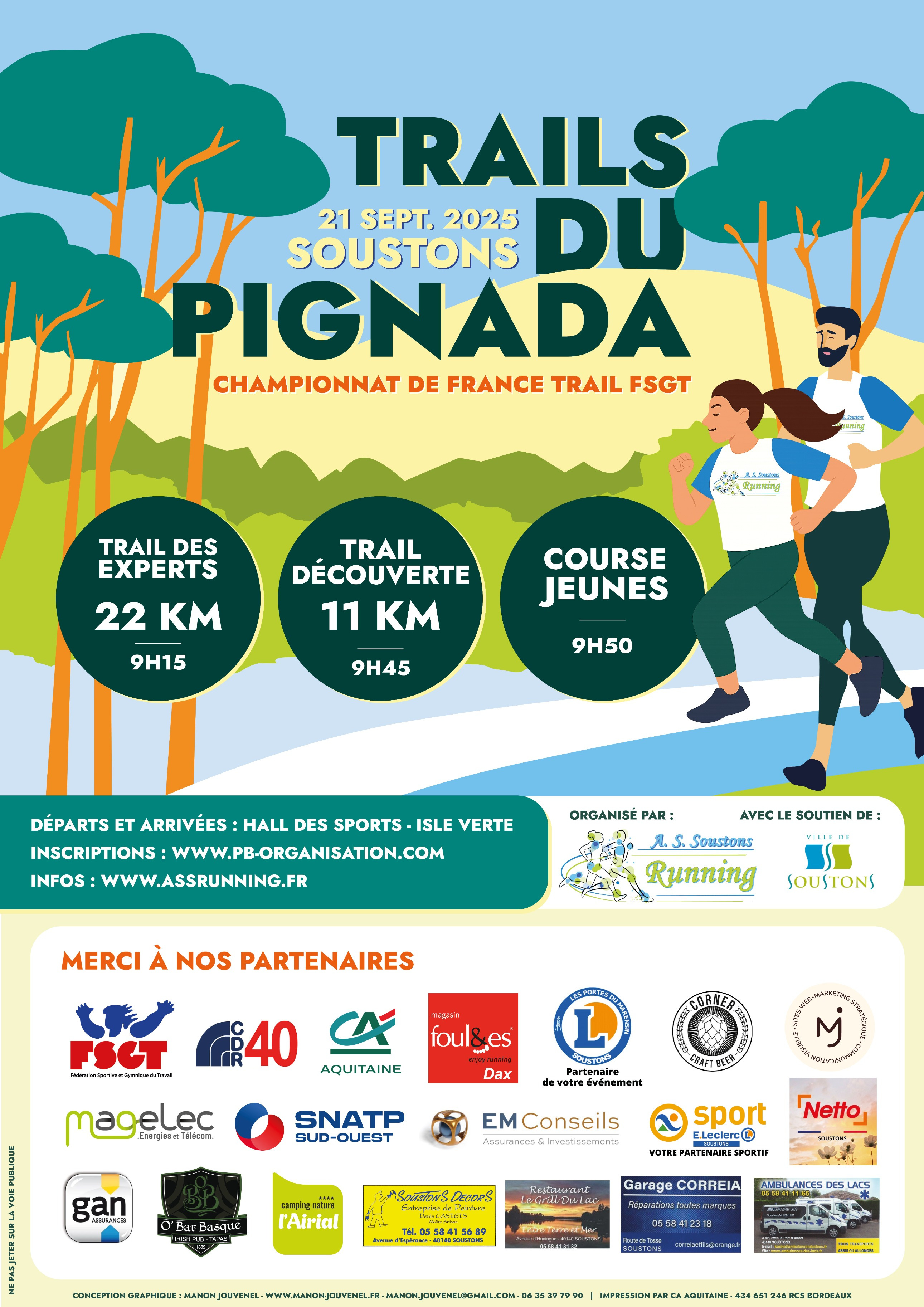 En ligne : PB Organisation avant le samedi 20 septembre 2025 14h00. Pour les mini-trails, inscription par le lien suivant : inscription 9-14 ans